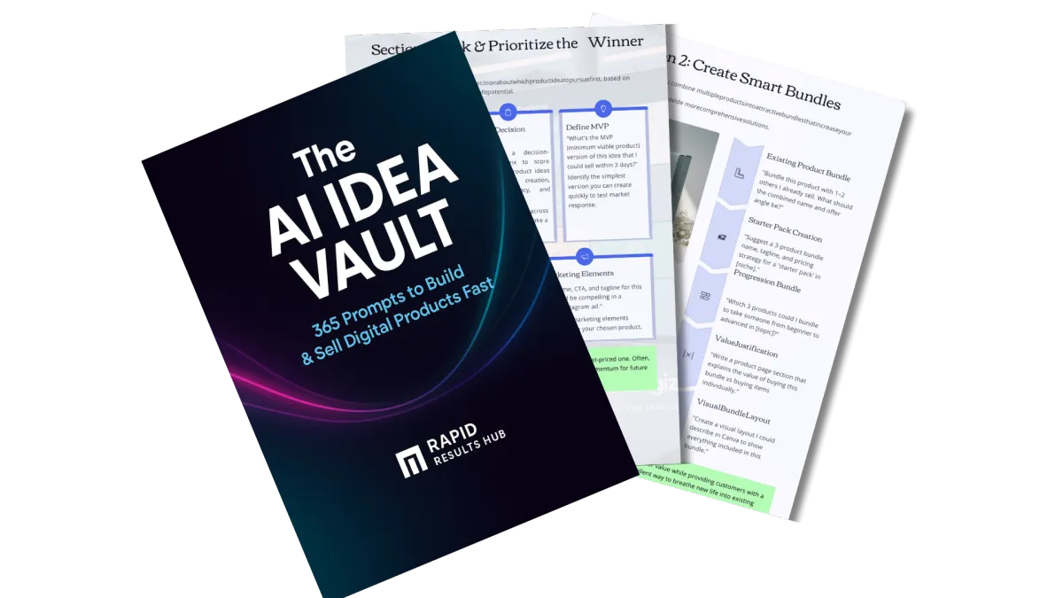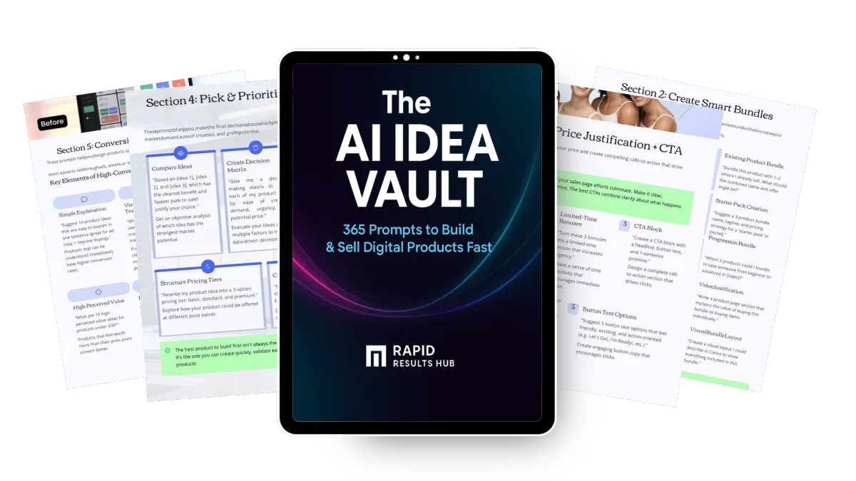 Turn your ideas into ready-to-sell products (PDFs, templates, planners, toolkits) and use the bonus prompts to create your headlines, hooks, and content in minutes.
